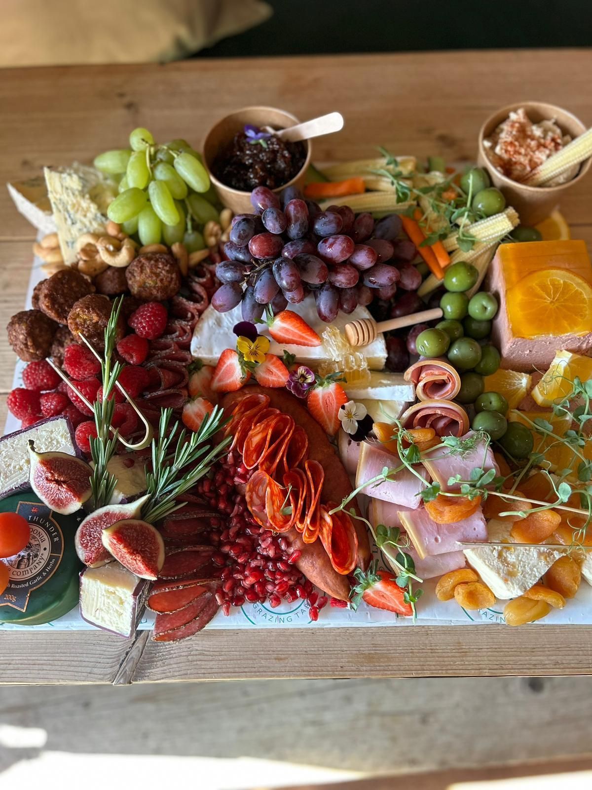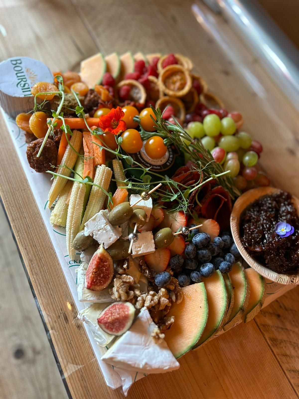 Our Grazing Platters are offered as an alternative to bespoke grazing tables. They come pre-prepared on boards that are delivered/collected to be laid straight on to any flat surface.